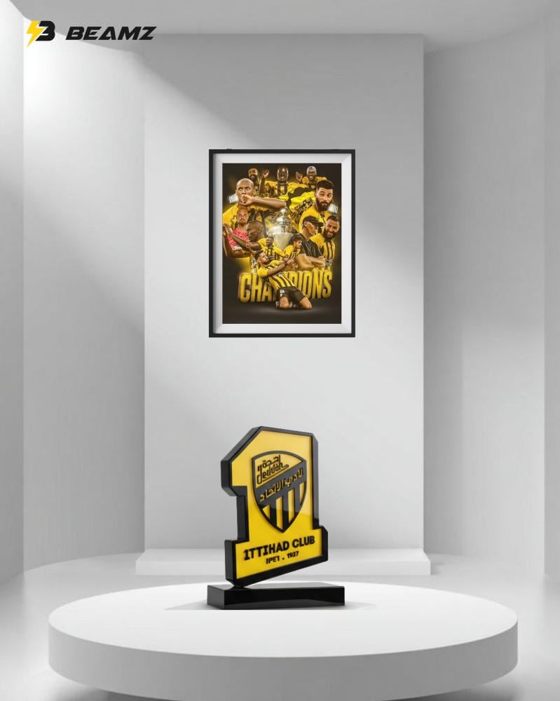 - بوستر الاتحاد التفاعلي 3D : مقاس 30 × 40 سم – بلمسة تفاعلية مميزة تعرض إنجازات النادي وصور الفريق من كل زاوية.